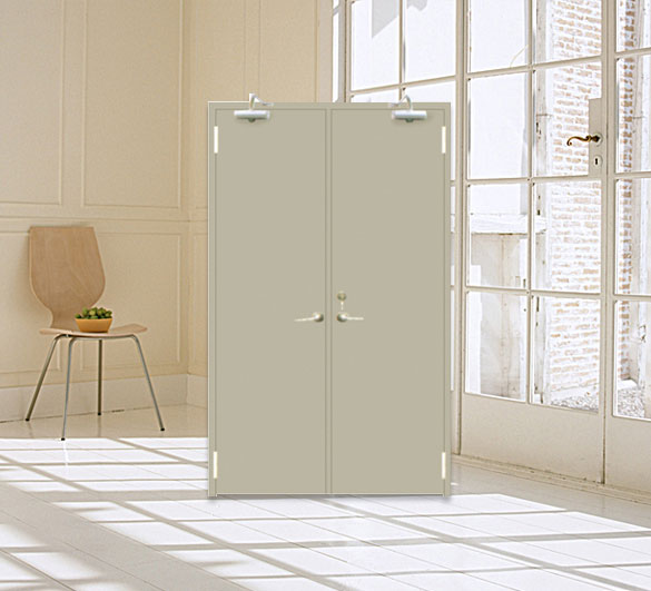 用鋼質(zhì)材料制作門框、門扇骨架和門扇面板,門扇內(nèi)若填充材料,則填充對(duì)人體無(wú)害的防火隔 熱材料,并配以防火五金配件所組成的具有耐火性能的門。